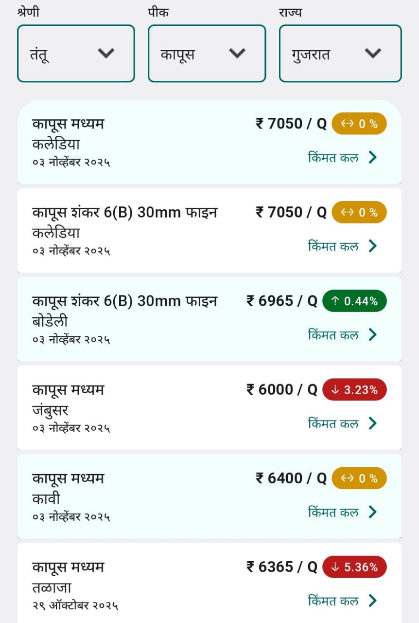 आजचे कापूस बाजारभाव – शेतकरी मित्रांनो कापूस हंगाम सुरू झाला असून काही प्रमाणात कापूस बाजारात विक्रीसाठी येऊ लागला आहे. सध्या कापसात ओलावा जास्त असल्याने 6500 ते 7300 दरम्यान बाजारभाव मिळत आहे. या लेखात संपूर्ण देशात महत्त्वाच्या कापूस उत्पादक राज्यात कापसाला किती दर मिळतोय पाहुया..