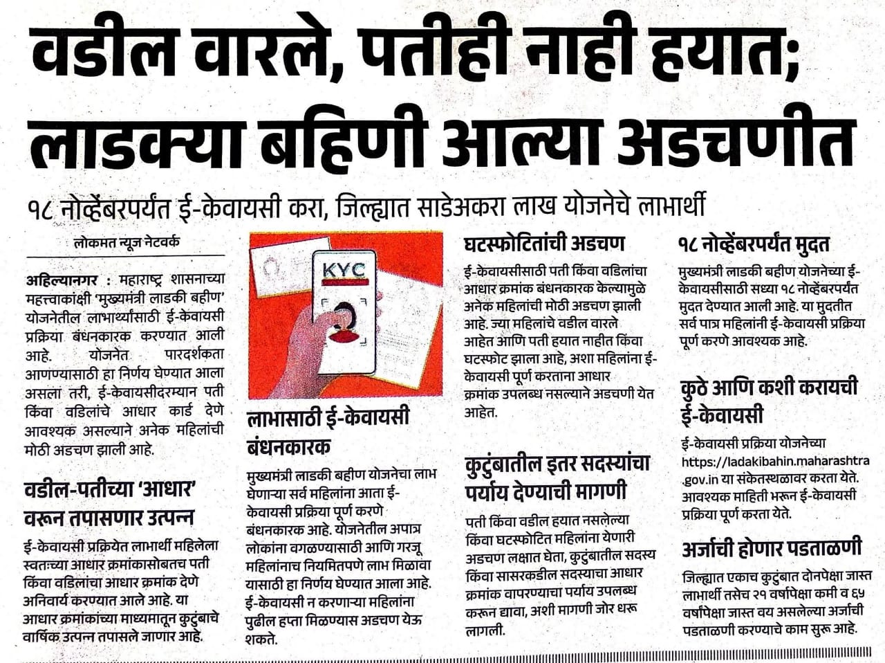 लाडक्या बहिणी अडचणीत ; वडील वारले पतीही हयात नाही -केवायसी कशी करावी